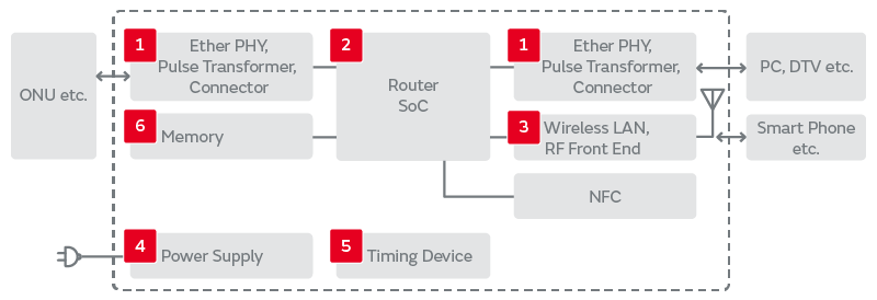 Murata’s lineup of products for use in home routers is introduced here.