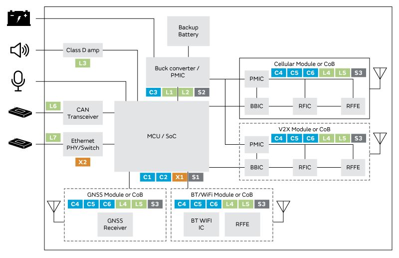 Murata’s lineup of products for use in telematics control units (TCUs), an essential element in connected cars, is introduced here.