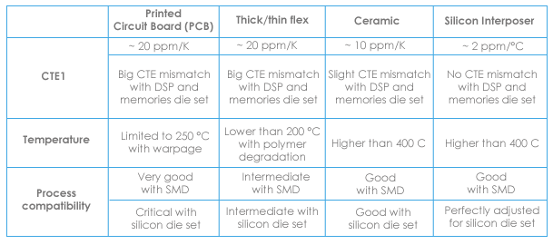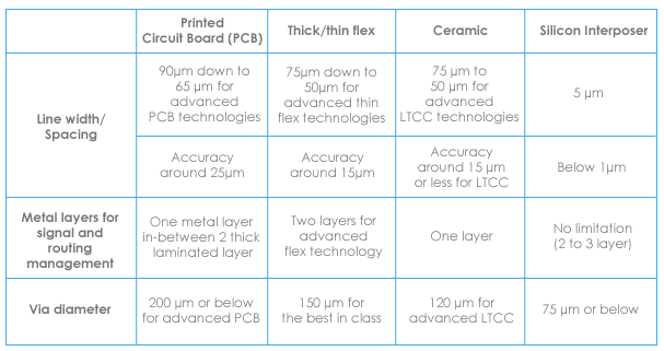 Silicon Interposer comparison with alternative technologies