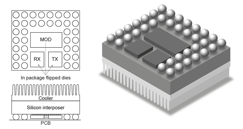 Custom Silicon interposer for TOSA / ROSA / TROSA 2.0
