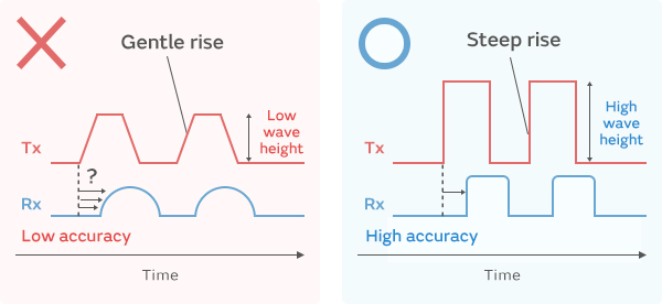 To achieve highly accurate measurement over even long distances, ToF must emit pulses with steep, high curves, as shown in the figure below.
