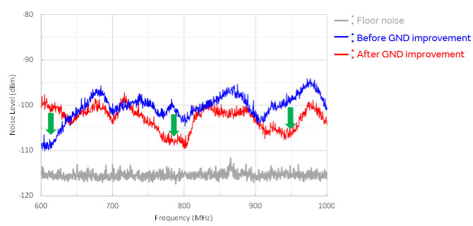 Improvement of the GND reduced the noise level by approximately 6 to 8 dB.