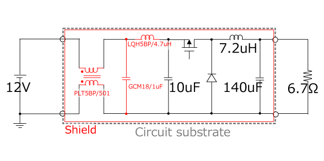→ Attach a shield to the circuit substrate. (Measure to suppress noise up to 20 MHz)