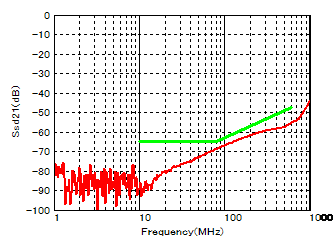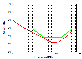 Because the emissions due to common mode current become large, noise suppression measures using components must be implemented.