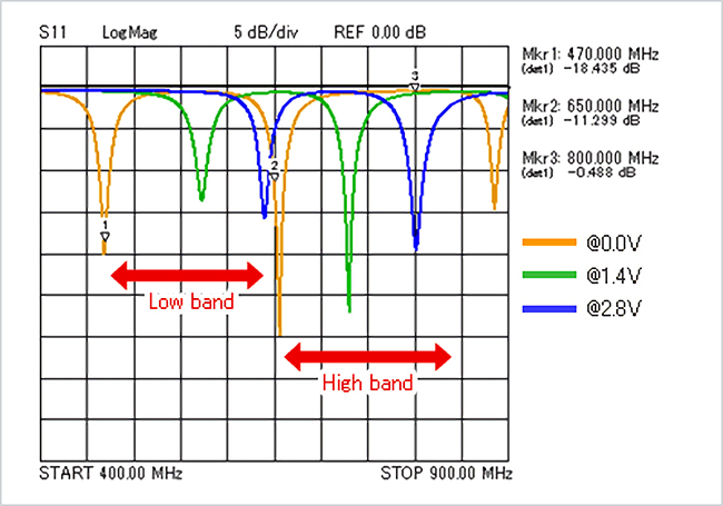Particularly, since UHF bands (470-800MHz) are used in antennas for MDTV(ISDB-T/CMMB/DVB-H) , it is difficult to miniaturize the antenna. As a method of miniaturization, adjustment of the resonance frequency by the inductor can be mentioned; however, it is necessary to select components taking into consideration the deterioration of the antenna characteristics. Antennas which cover the 700 MHz band or multiple bands have also been required by LTE which has already been started. Particularly, as a technology that is attracting attention, there is a switching method to adjust the frequency using a switch to change 1 antenna element. Even with this switching method, there are cases where a lumped constant (inductor and capacitor) is used to adjust the frequency along with the switch.