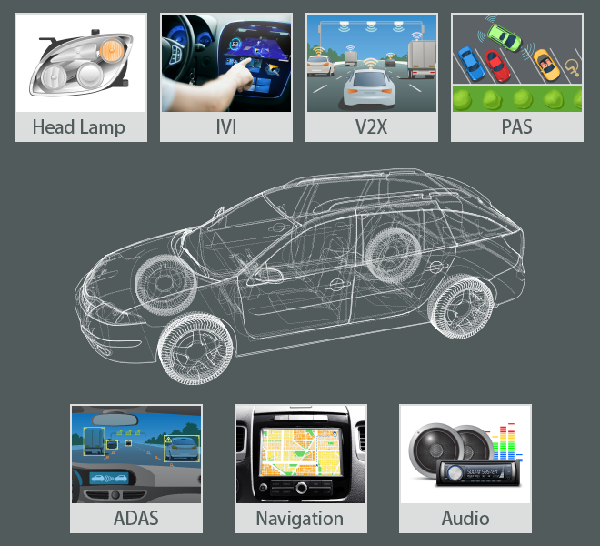 Let's take a look at the ADAS used for safety devices, head lamps, and the IVI used for infotainment.