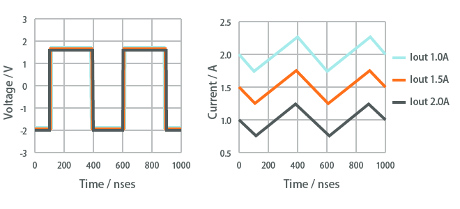 When Iout fluctuates, changes are not observed in the waveform of the triangular wave current, but the average value of the current changes based on the size of Iout (Figure 2-5-9).