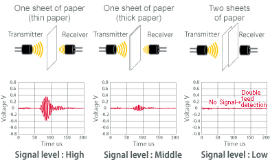 Difficult to detect the number of sheets (the difference between two thin sheets and one thick sheet).Adjustment is necessary when using thick paper.