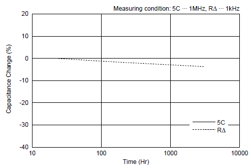 For your information, it is not only our products that have aging characteristics; it is a phenomenon commonly observed in high dielectric constant capacitors. Temperature compensating capacitors don't have aging characteristics.