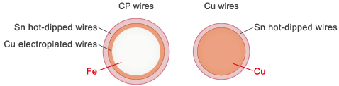 Lead wires consist of CP wires or Cu wires. The construction of each type is shown in the figure below.