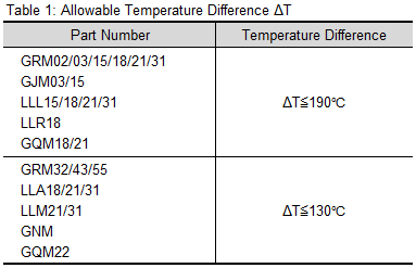 Also, set the preheating conditions so the temperature difference ΔT between the solder temperature and the capacitor surface temperature is within the range shown in Table 1.