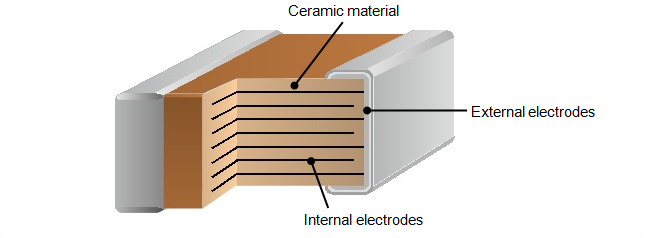 For the GJM and GQM series, the difference lies in the rated voltage. For the GRM series, nickel (Ni) is used as the inner electrode material, whereas low-resistance copper (Cu) is used for the GQM and GJM series. The use of low-resistance copper allows for a low equivalent series resistance (ESR) to be achieved in the capacitor.